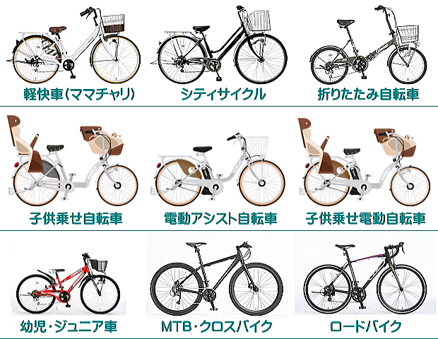 修理依頼の際、ご自分の自転車がどのタイプに当てはまるのかわからない時は、下の画像を参考にしてください。